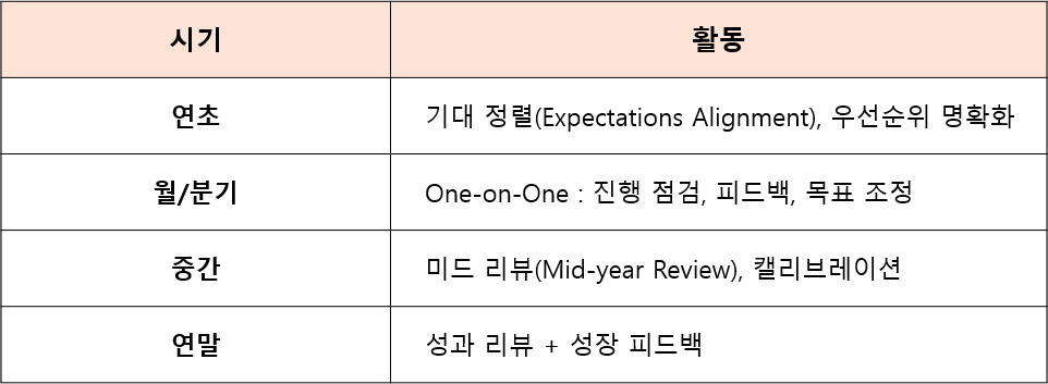 ■ 원칙 3: 연말 평가가 아니라 연중 코칭 시스템