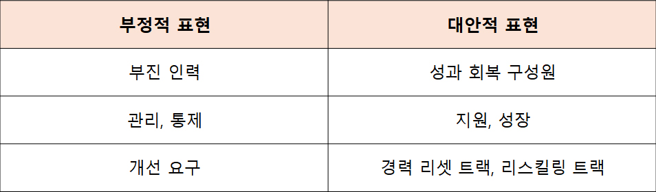 ์ ์ฑ๊ณผ์๋ฅผ ํน์ ํ๊ณ ๋ชฐ์๊ฐ๋ ๋ฐฉ์์ ์ฌ๋ฆฌ์ ์์ ๊ฐ(Psychological Safety, Edmondson, 1999)์ ํด์น๊ณ , ํ์ต๊ณผ ๋ณํ์ ๋๊ธฐ๋ฅผ ์๊ฒ ๋ง๋ญ๋๋ค. ๋ฐ๋ผ์ ๋ฉ์์ง๋ฅผ ๋ฐ๊พธ๋ ๊ฒ๋ถํฐ ์์ํด์ผ ํฉ๋๋ค.